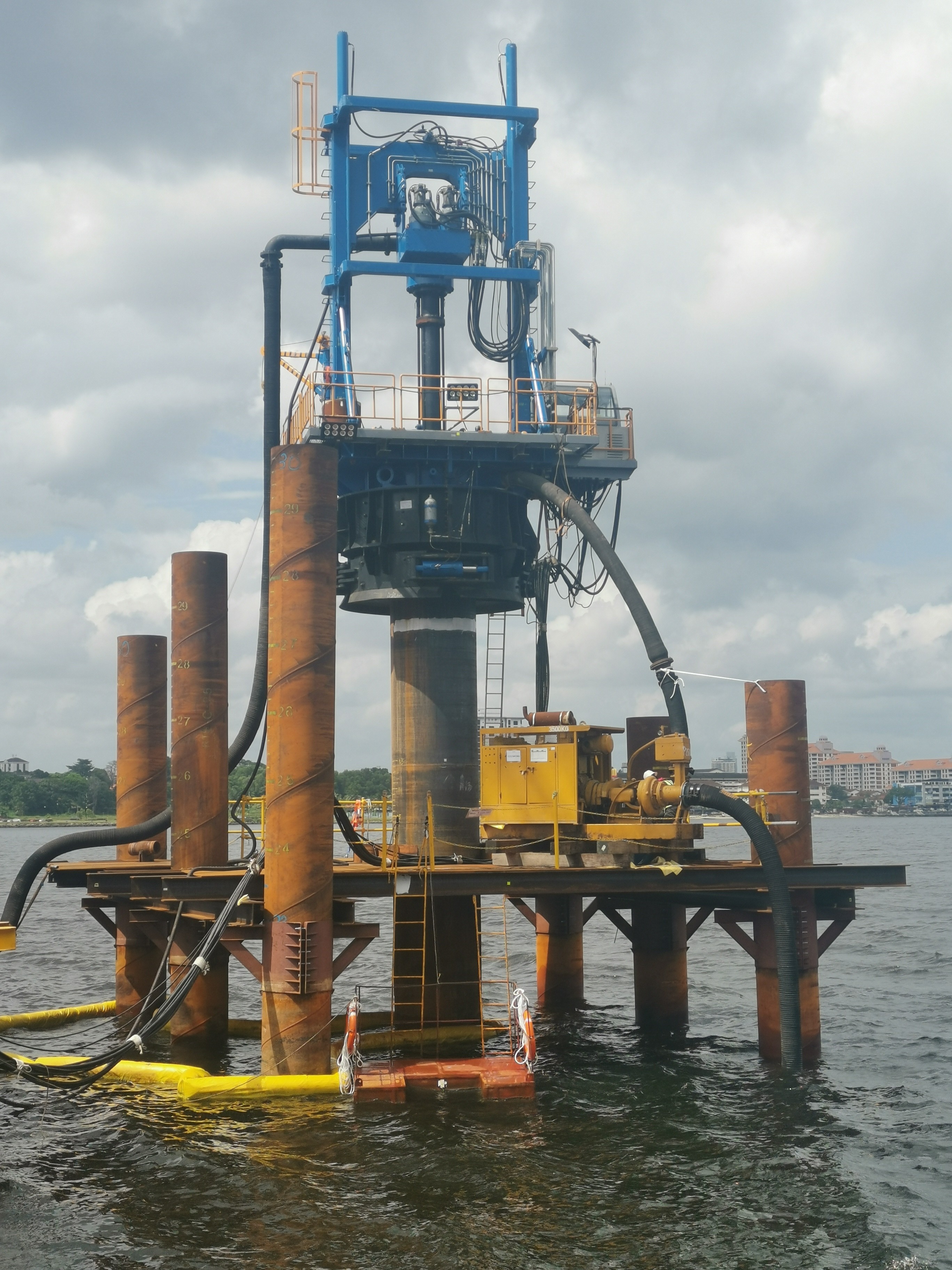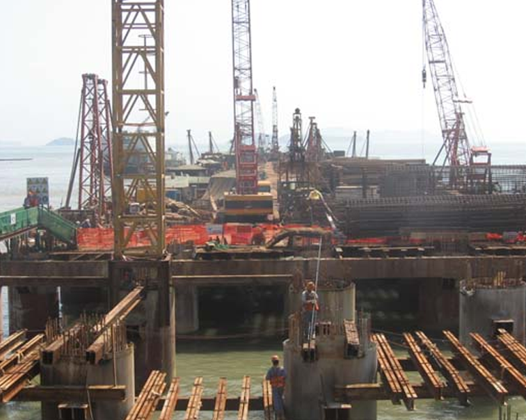 2012年12月至2013年10月,我公司配合中交三航局完成了港珠澳大橋島隧工程東人工島與香港方向連接的非通航孔橋墩嵌巖樁施工,這是我公司全部采用液壓回轉鉆機進行施工的又一施工典例。