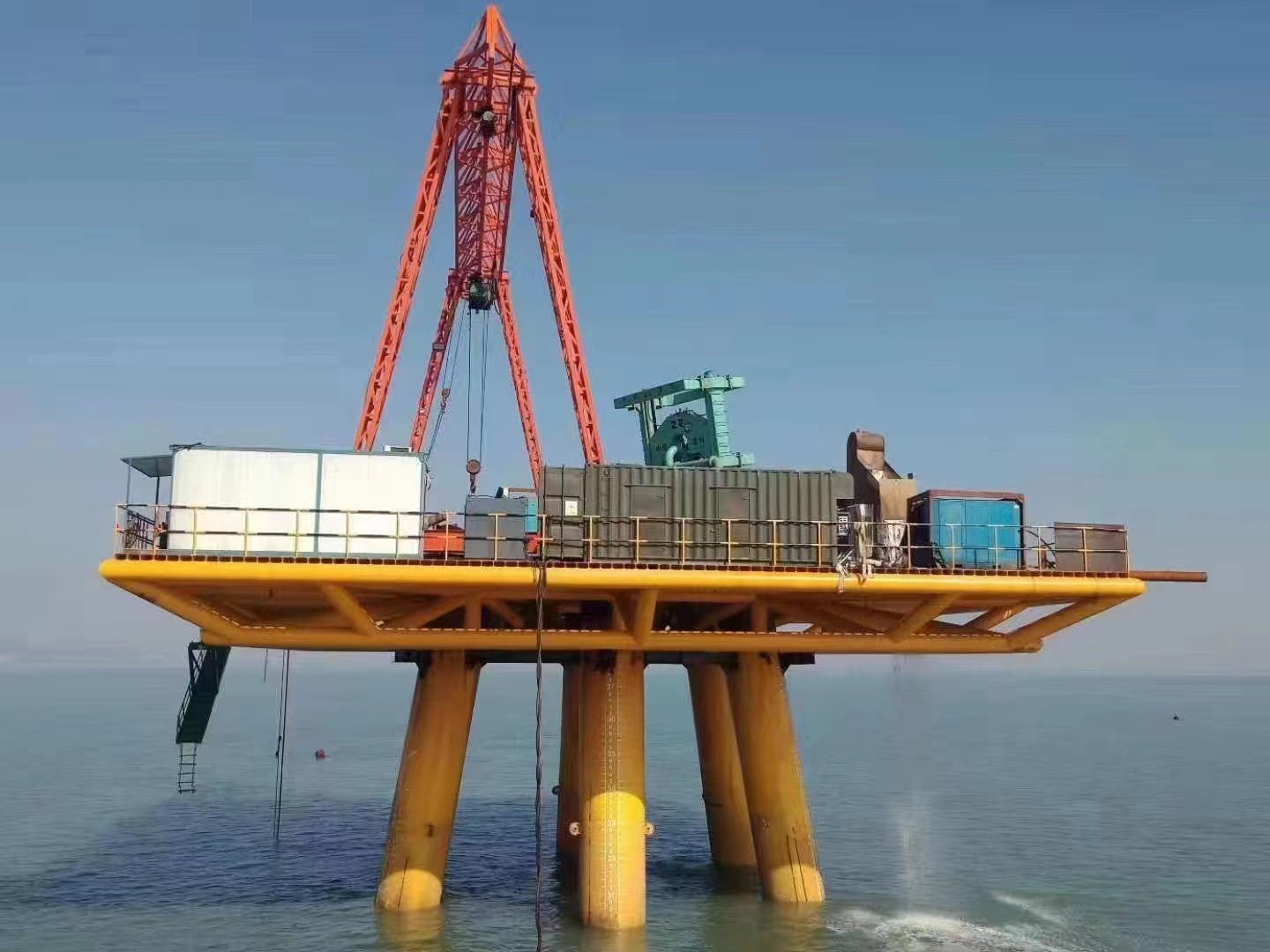 我國第一座3.4兆瓦潮流發電總成平臺施工場景